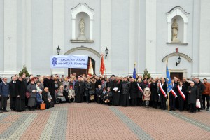 Uroczystej Liturgii przewodniczył ksiądz biskup Henryk Tomasik wraz z obecnymi asystentami diecezjalnymi, księdzem Andrzejem Jędrzejewskim i księdzem Grzegorzem Wójcikiem oraz obecnymi asystentami oddziałów parafialnych AK. Ksiądz Jędrzejewski na początku Eucharystii powiedział: „W uroczystość Chrystusa Króla Wszechświata chcemy wyznać naszą wiarę w Jego panowanie nad światem. Chcemy też powiedzieć, że pragniemy, by On był Królem naszych serc, Panem naszego życia. Chcemy wołać: „Przyjdź królestwo Twoje”, by to królestwo, które nie jest z tego świata, przez naszą pracę, apostolstwo, wiarę się dokonywało”. W tych słowach wypowiedział to wszystko, co wypełnia serce każdego członka Akcji Katolickiej. Razem z Akcją Katolicką, święto patronalne przeżywało Katolickie Stowarzyszenie Młodzieży, a wspólne przeżywanie takich chwil stało się już tradycją. I właśnie dlatego, w swojej homilii ksiądz biskup Henryk Tomasik powiedział: „Dzisiaj Panu Bogu dziękujemy za te dwa stowarzyszenia: za Akcję Katolicką i Katolickie Stowarzyszenie Młodzieży. Są one związane ze szczególną decyzją pracy nad sobą, aby kształtować życie w duchu Ewangelii, aby kształtować życie społeczne, życie swojego środowiska, życie rodzinne, zawodowe – Akcja Katolicka, życie rodzinne, życie młodzieżowe – Katolickie Stowarzyszenie Młodzieży”. W czasie Eucharystii nowi księża asystenci i prezesi oddziałów parafialnych odebrali nominacje oraz nowi członkowie stowarzyszenia otrzymali legitymacje z rąk Księdza Biskupa.