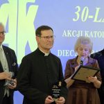 Po Eucharystii kontynuowaliśmy uroczystości w Sali konferencyjno-bankietowej AVIATOR w Radomiu. Na rozpoczęcie gali Teresa Połeć prezes DIAK powitała gości. Następnie Ks. dr Andrzej Jędrzejewski wygłosił konferencję na temat „ Wezwania dla katolików świeckich w świecie współczesnym”. Podsumowanie działalności Akcji Katolickiej Diecezji Radomskiej w minionym 30-leciu ukazaliśmy w filmie „ Akcja Katolicka w obrazie”. Nie zabrakło też podziękowań, gratulacji i życzeń kierowanych do kapłanów, zarządu, członków Akcji Katolickiej. Zasłużonym dla Akcji Katolickiej zostały wręczone statuetki.