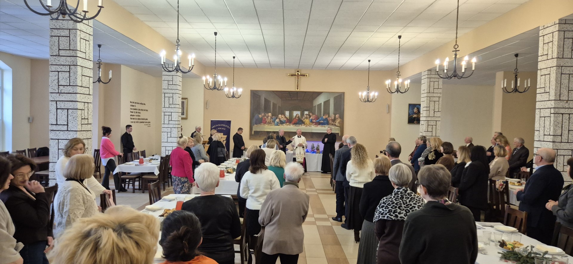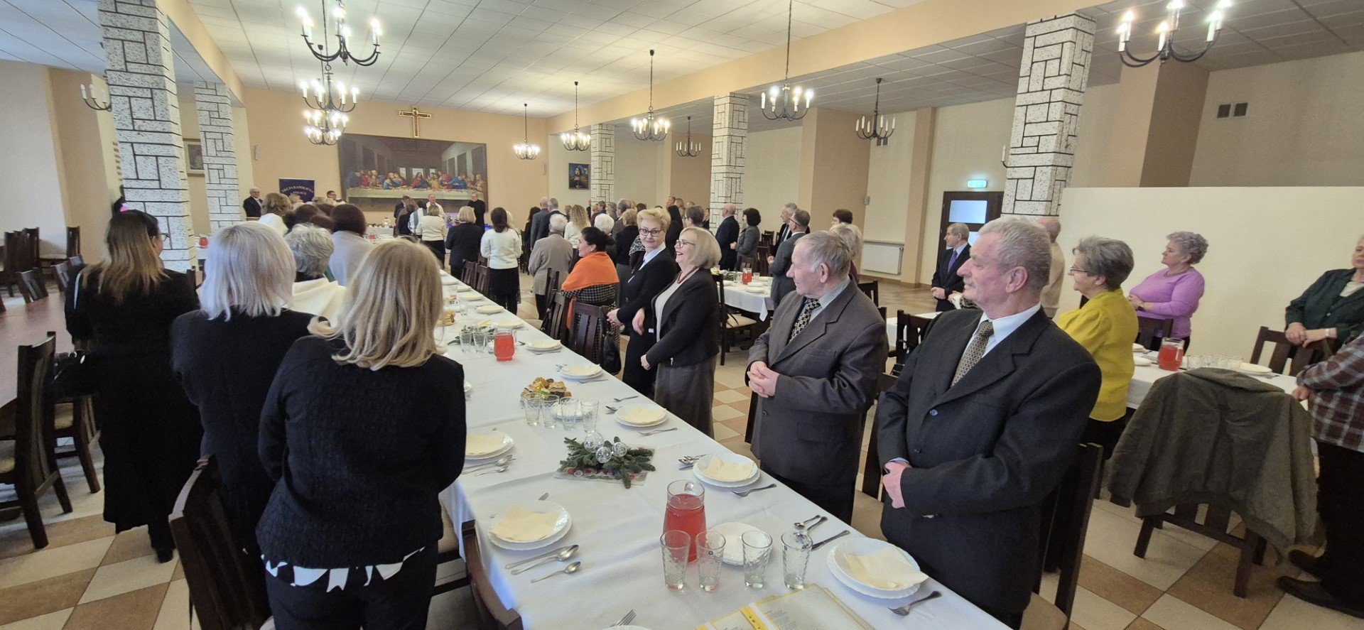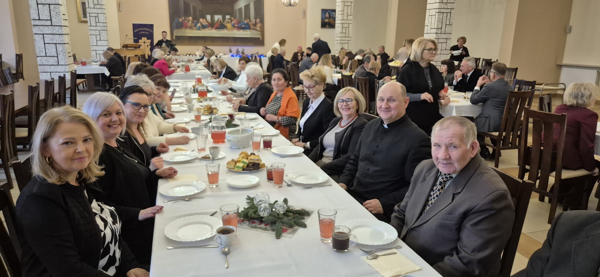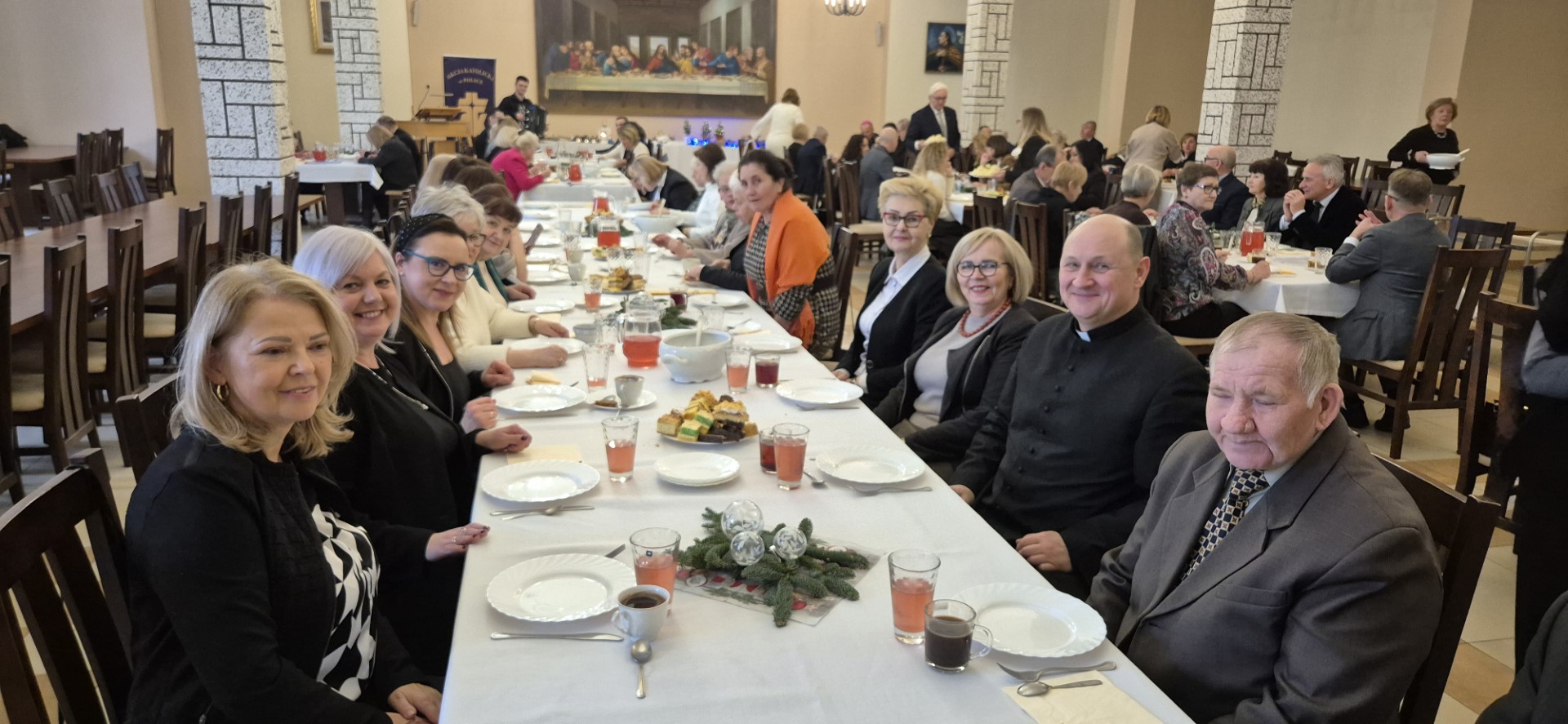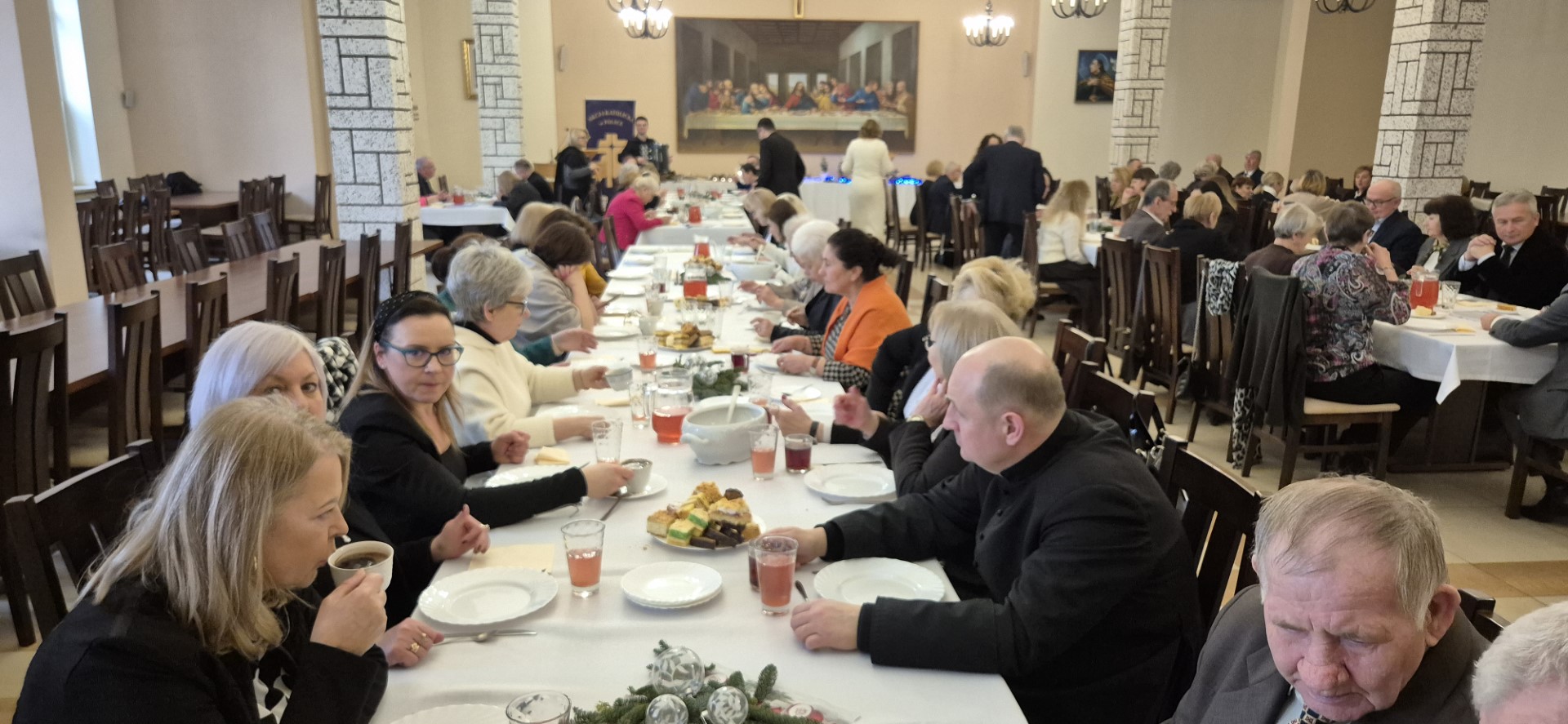 Dalsza część spotkania opłatkowego miała miejsce na refektarzu, gdzie w świątecznej atmosferze składaliśmy sobie życzenia, śpiewaliśmy kolędy i cieszyliśmy się radosną aurą, która panowała wśród nas.